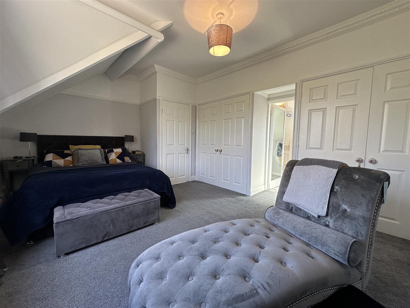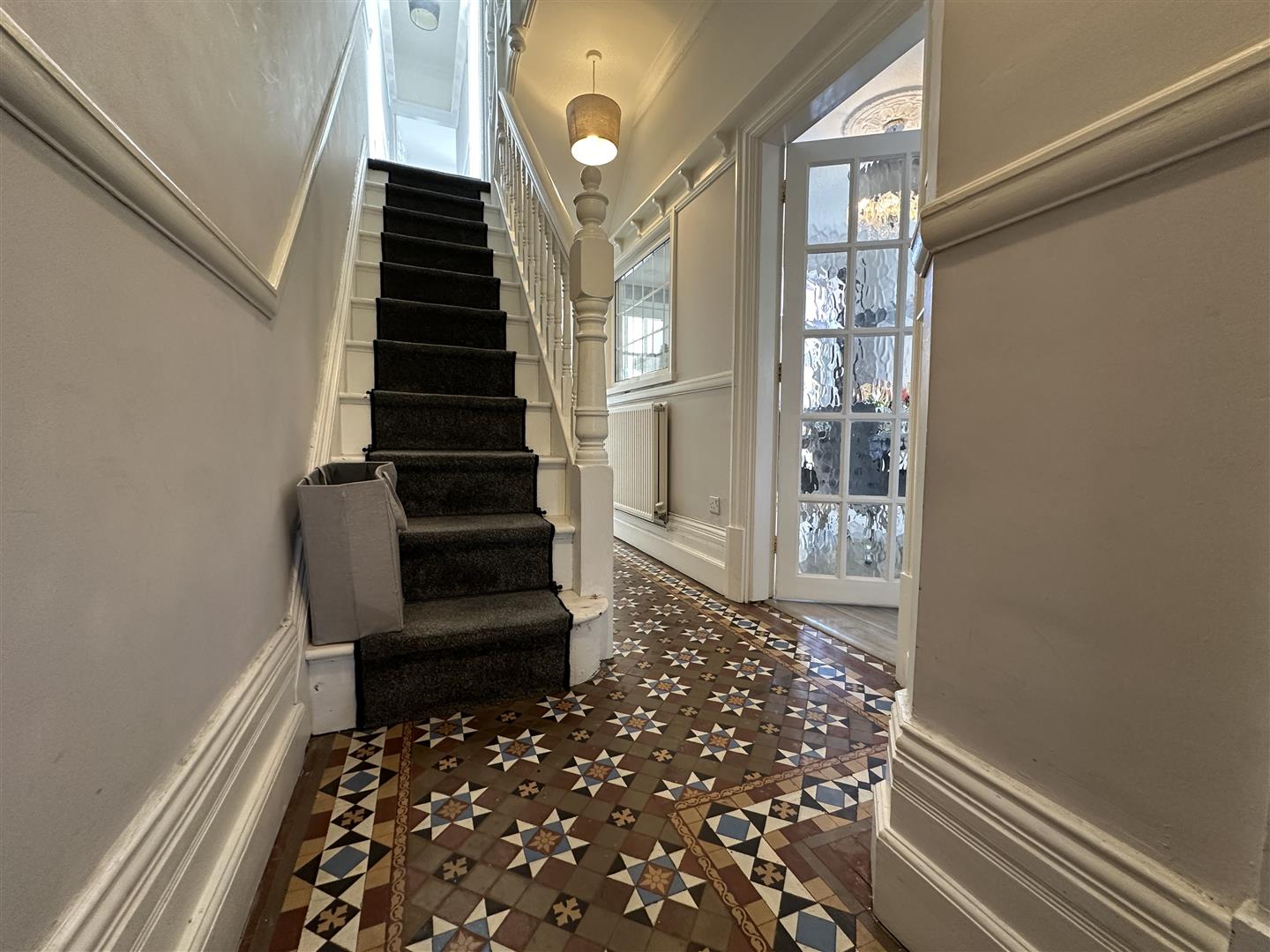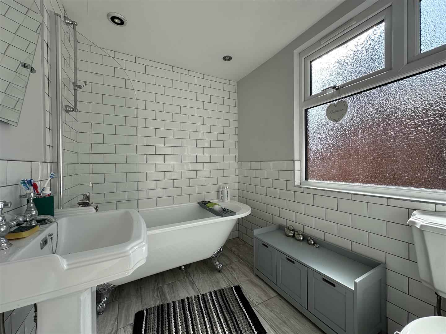 Upstairs, the first floor offers three well-proportioned bedrooms, including a spacious bay-fronted principal bedroom with built-in wardrobes and a stylish en-suite shower room. A luxurious family bathroom features a classic claw-foot bath, adding to the period charm.