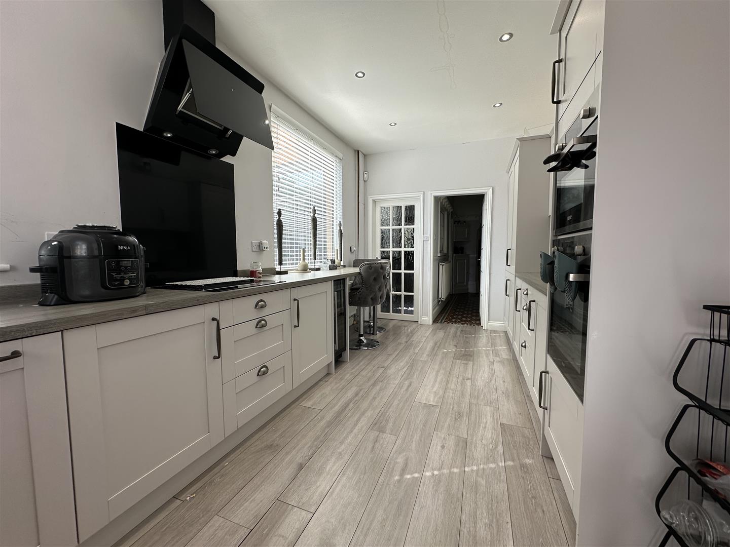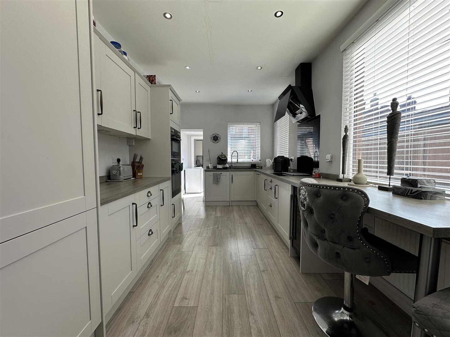 •Modern fitted kitchen with integrated appliances and breakfast bar