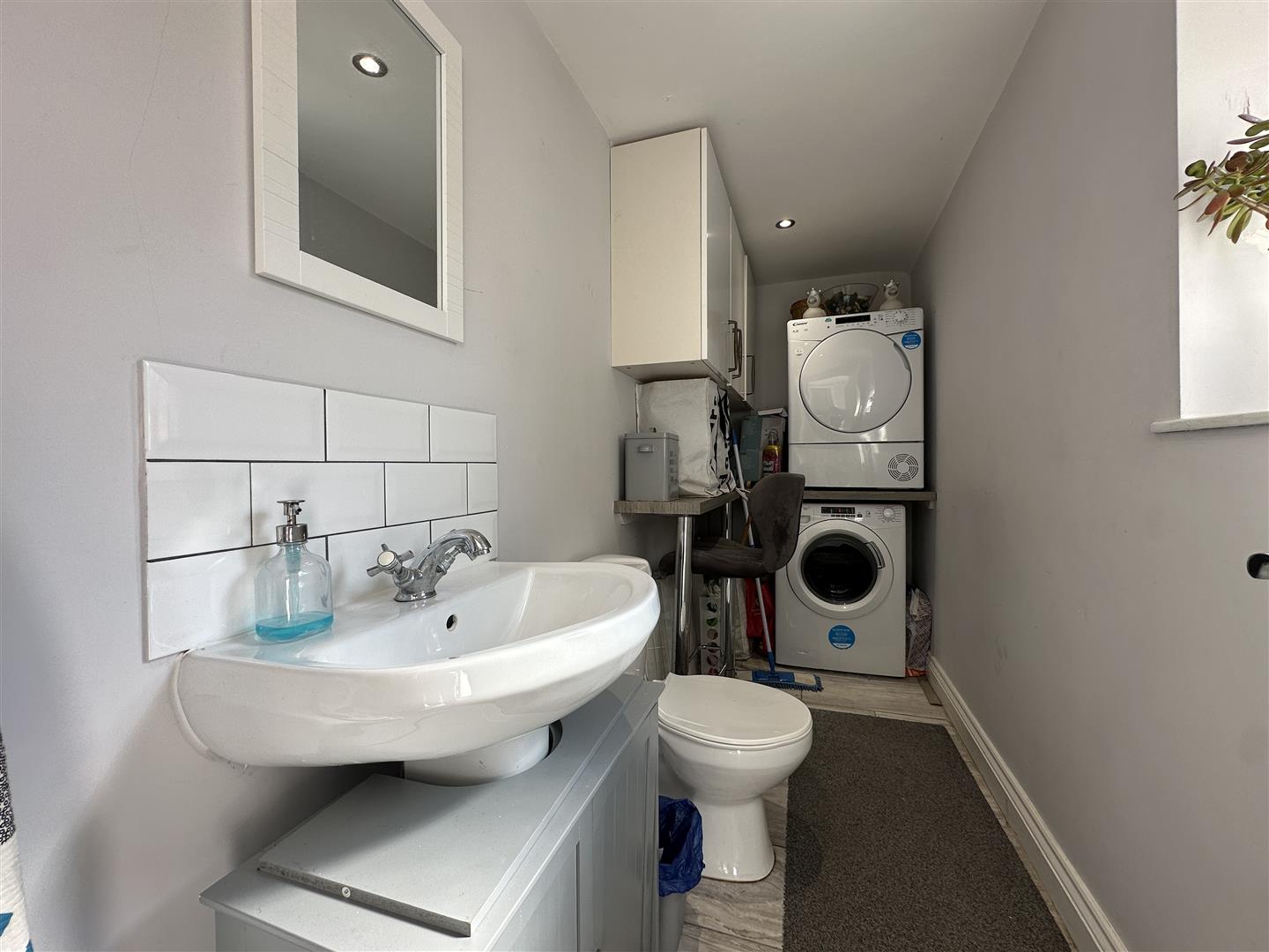 To the rear, a well-appointed kitchen breakfast room boasts modern fitted units, integrated appliances, a breakfast bar, and dual aspect windows, ensuring both style and practicality. A handy utility room with WC and additional side access completes the ground floor.