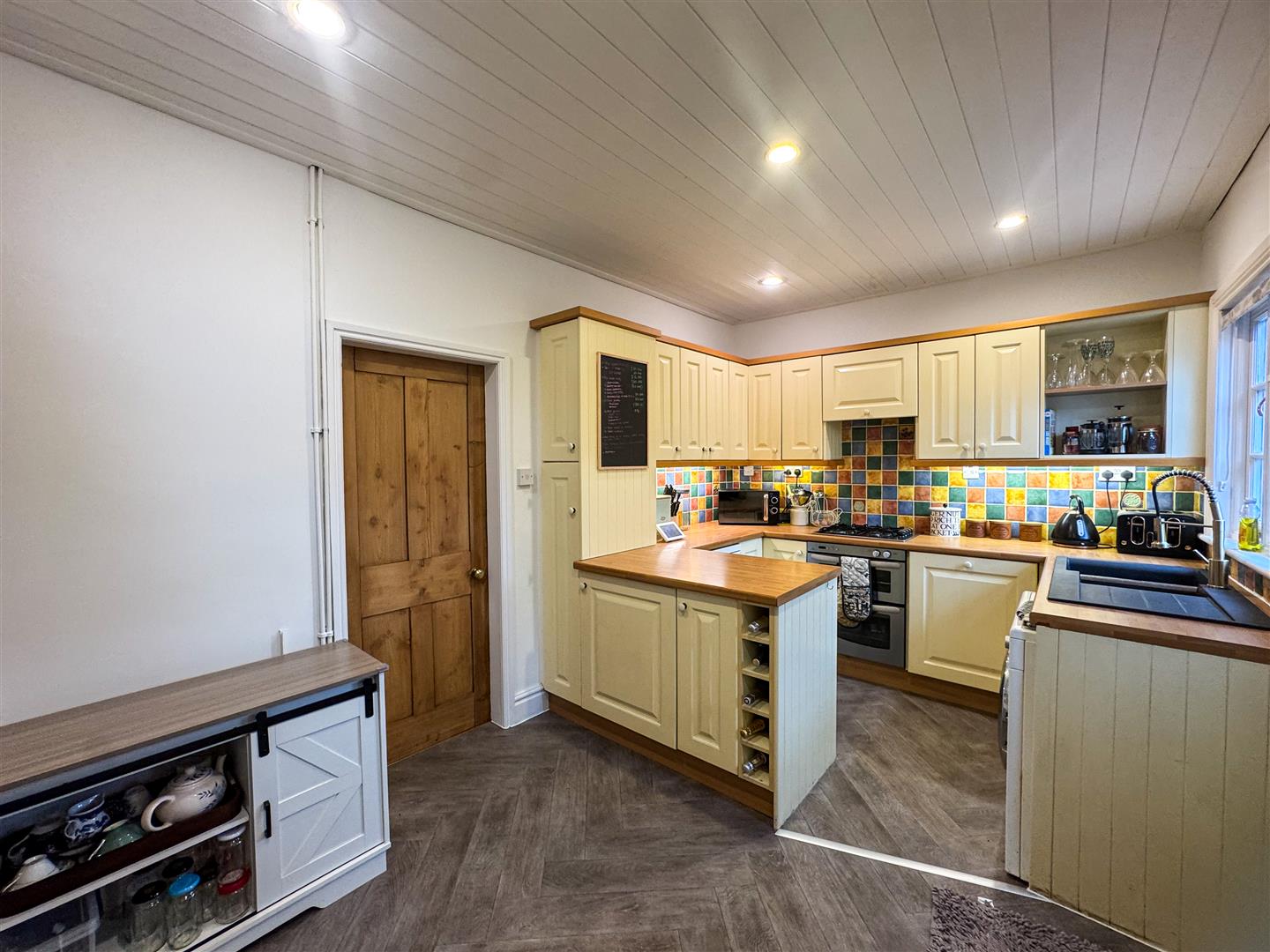 This charming home immediately welcomes you with a handy porch — the perfect place to hang coats and kick off shoes, helping keep the lounge warm and tidy. The lounge itself is a lovely, homely space, featuring a cosy living flame gas fire for those colder evenings, with plenty of room for both a sofa and dining table. A door leads through to the dining kitchen, which is fitted with a range of wall and base units and provides ample space for essential appliances. Integrated appliances include a freezer and dishwasher, and the central heating boiler has been replaced in recent years. The kitchen is clean, practical, and sociable, with enough room for a small bistro-style table and chairs. A stable-style door opens out to the beautifully maintained rear garden, while stairs lead to the first floor.