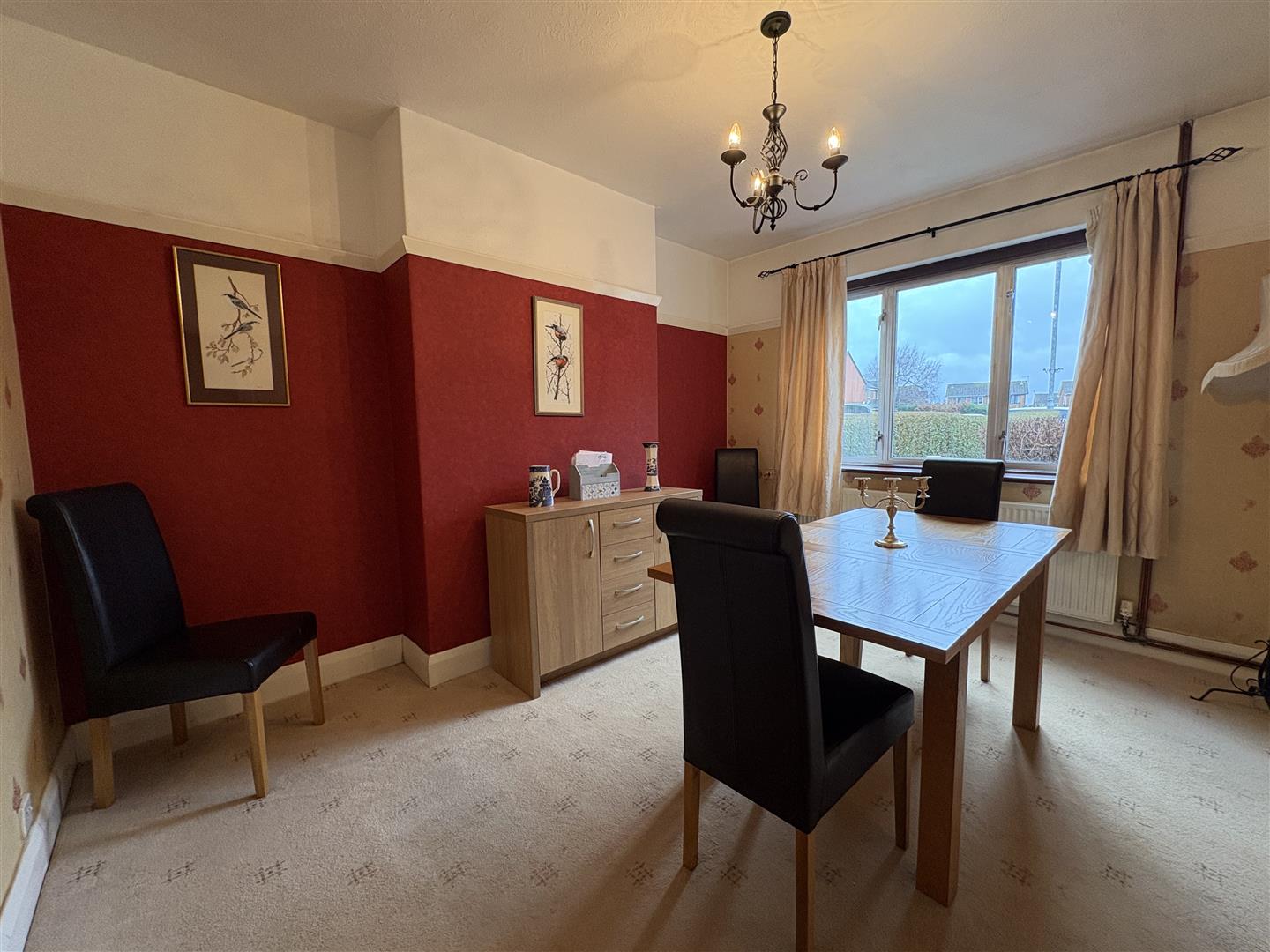 Internally, the home is approached via a welcoming entrance hall. The fitted kitchen is situated to the front, offering a pleasant outlook and practical workspace. To the rear, a bright and comfortable living room enjoys views over the garden, creating a relaxing setting for everyday living. A separate dining room provides a dedicated space for family meals and entertaining, while a convenient ground floor W/C completes the downstairs layout.