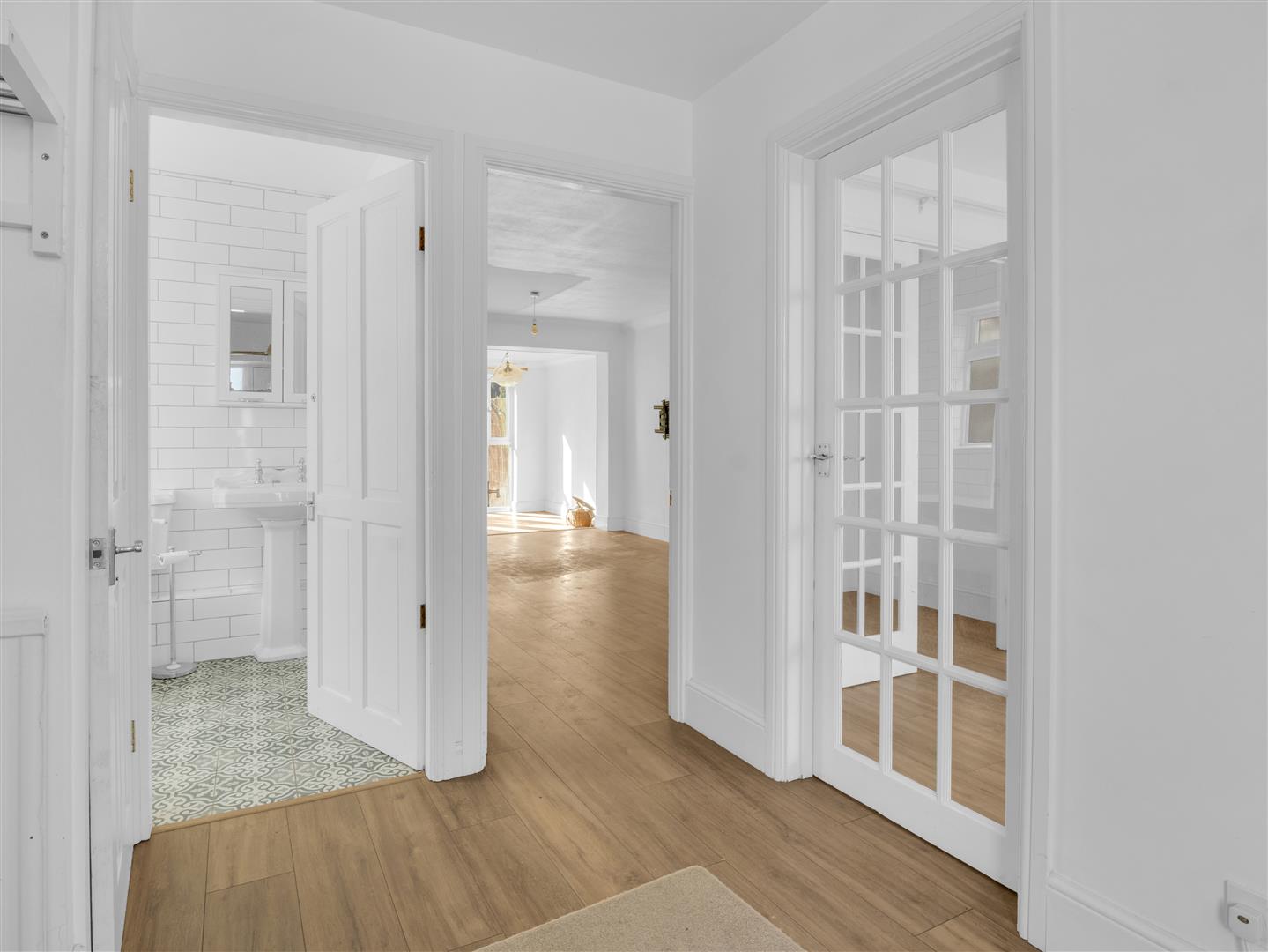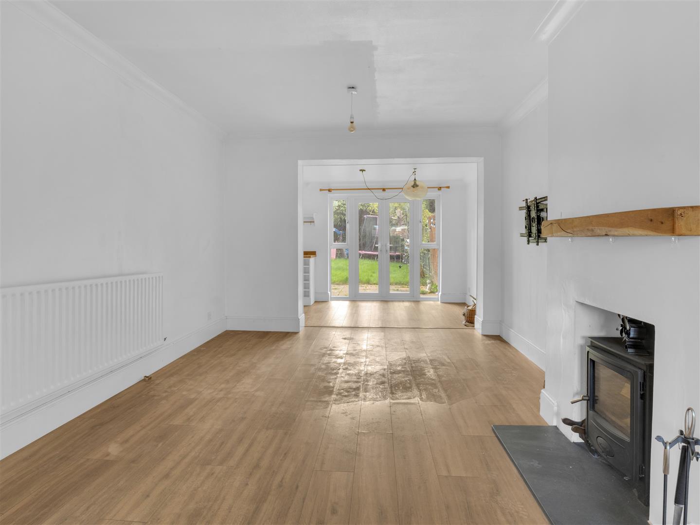 To the front of the property is a second reception room, currently used as a sitting room but equally well suited as a third bedroom, home office, or playroom. Double doors connect it back through to the main living area, adding to the flexibility of the layout.