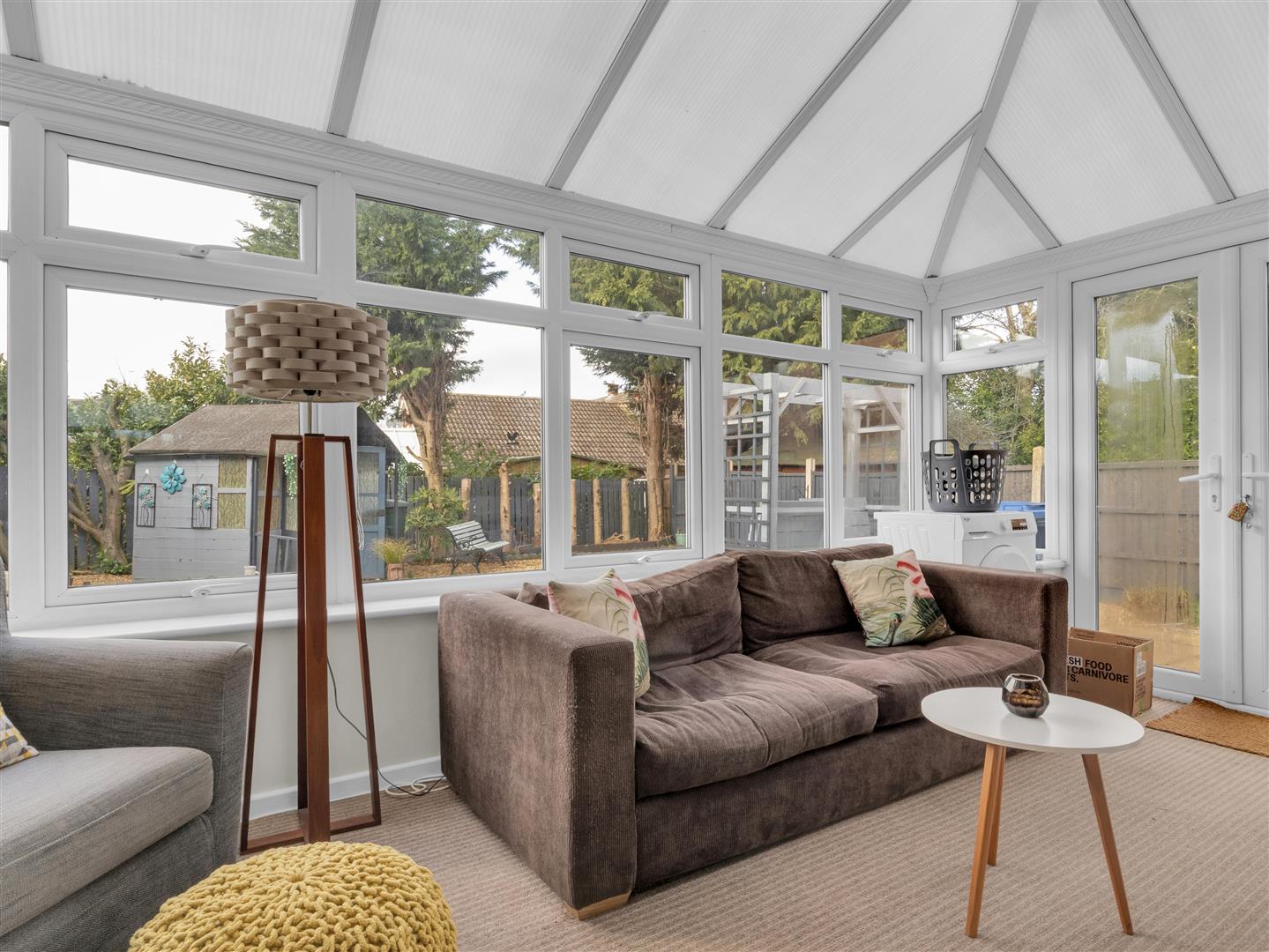 To the front elevation, the property benefits from a driveway providing off-road parking. Internally, you are welcomed via an entrance porch leading into a spacious reception room, which flows seamlessly through to a dining area – creating an excellent layout for both everyday living and entertaining. To the rear, a large conservatory/sun room overlooks the garden and provides an additional reception space filled with natural light. The kitchen has been fitted in a modern style and offers ample storage and worktop space.