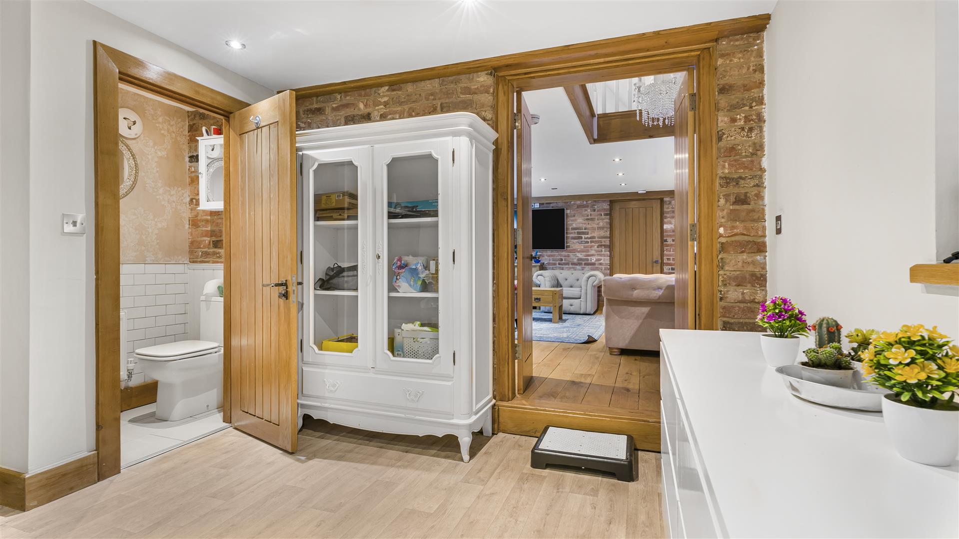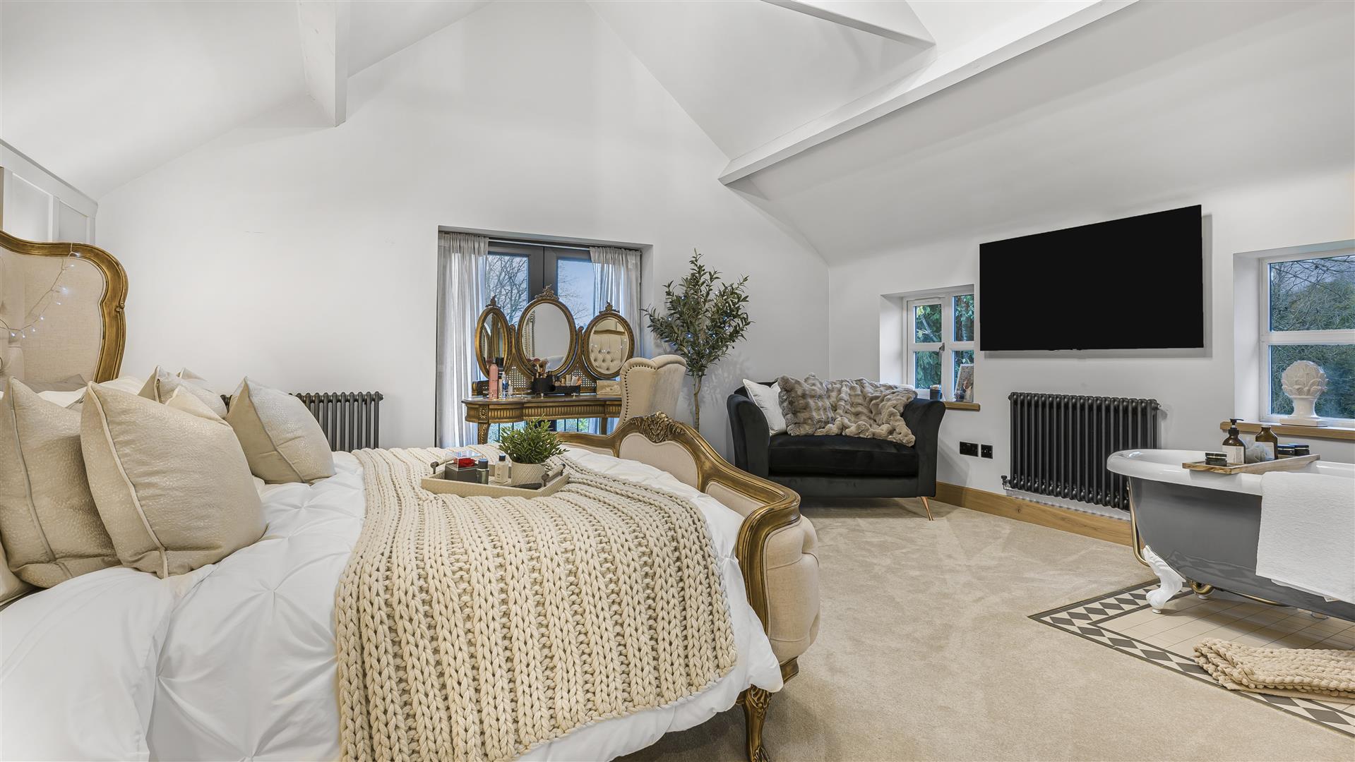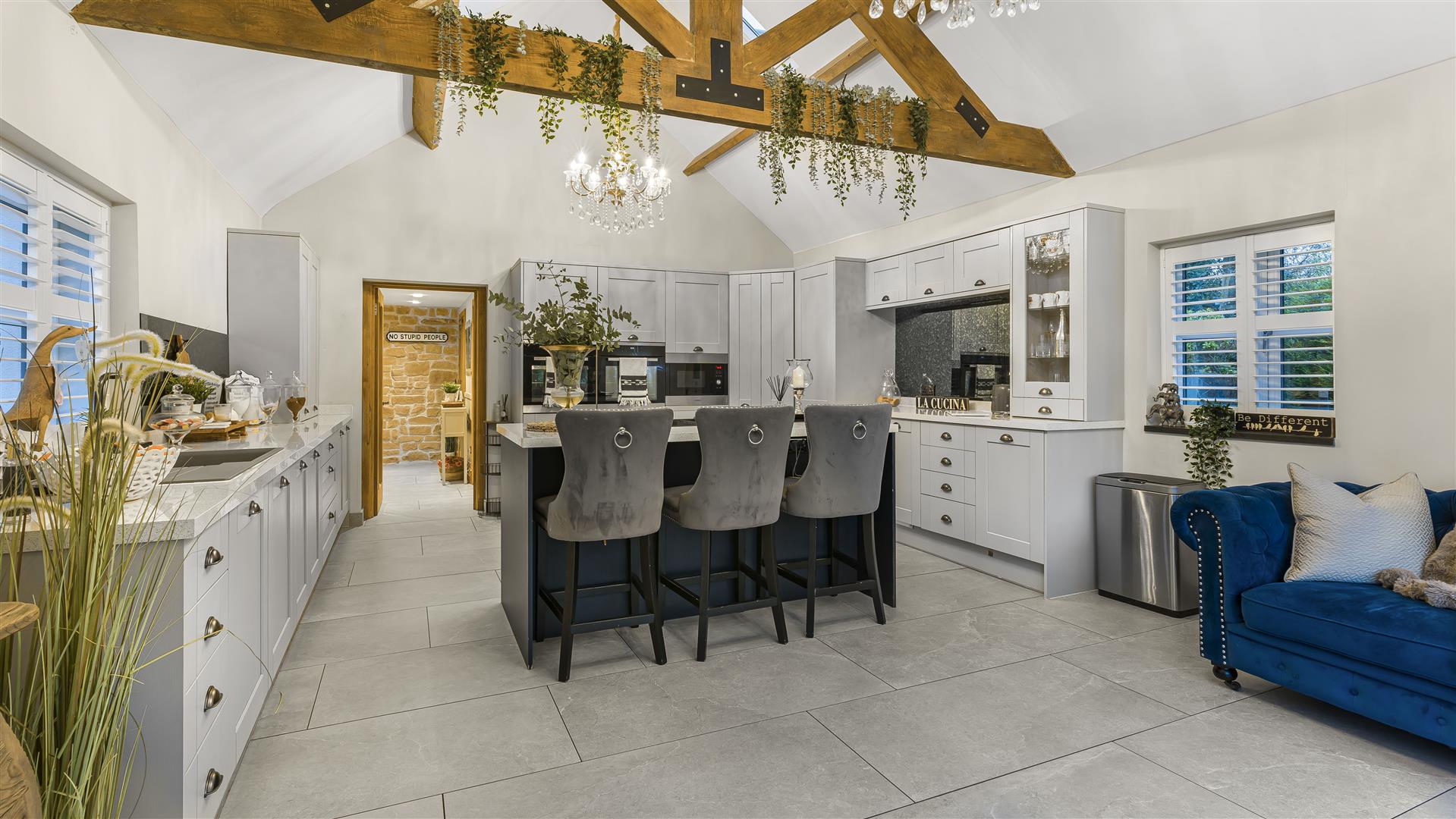 A detached, self-contained two-storey barn conversion enhances the versatility of The Woodlands — ideal for guests, multi-generational living, or as a premium holiday let. It features a spacious sitting room, fitted breakfast kitchen, ground-floor bedroom with W.C., and a striking first-floor suite with dressing room and ensuite, all finished with the same meticulous attention to detail.