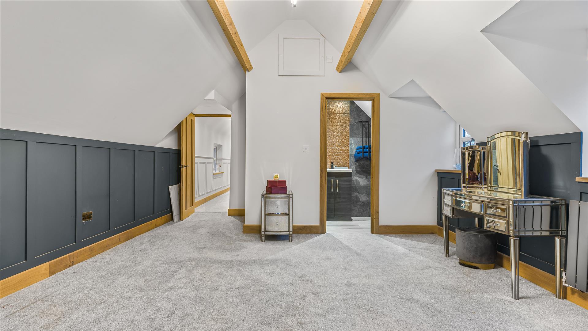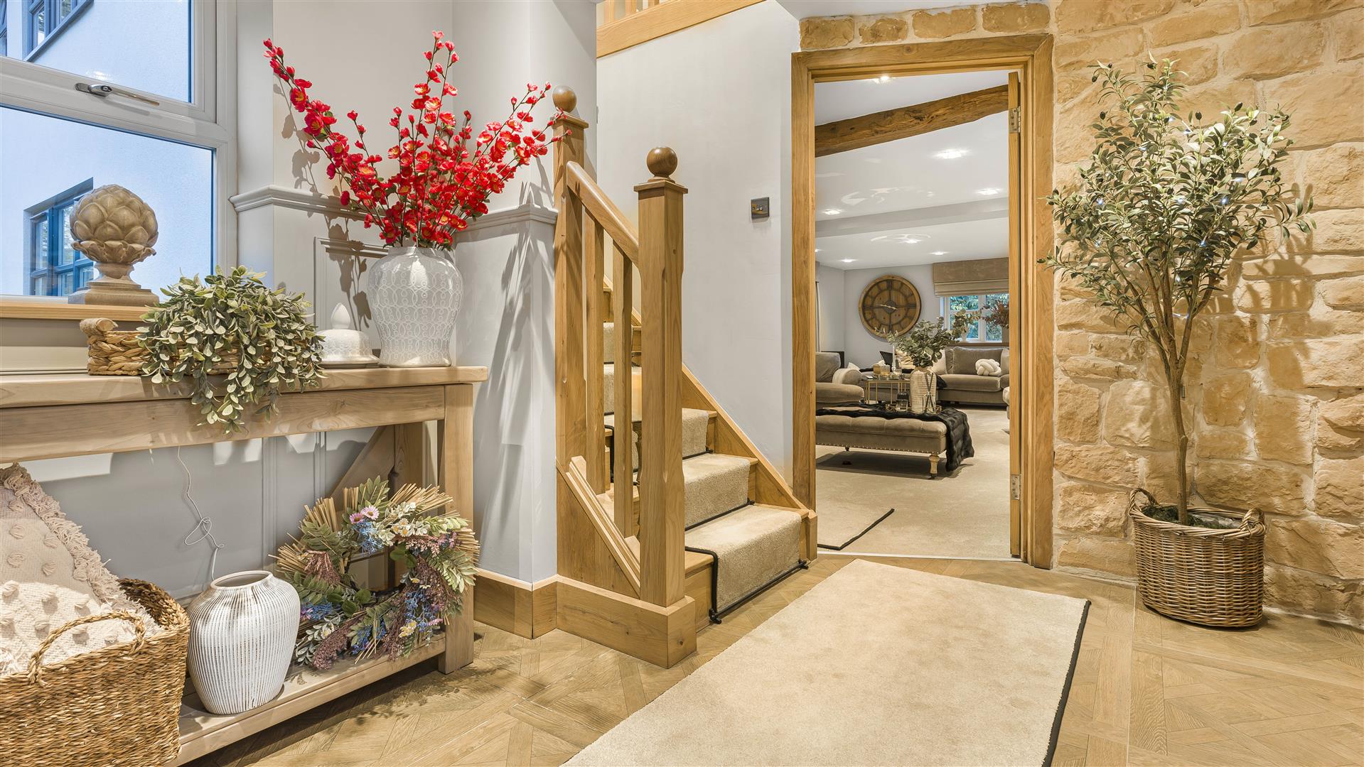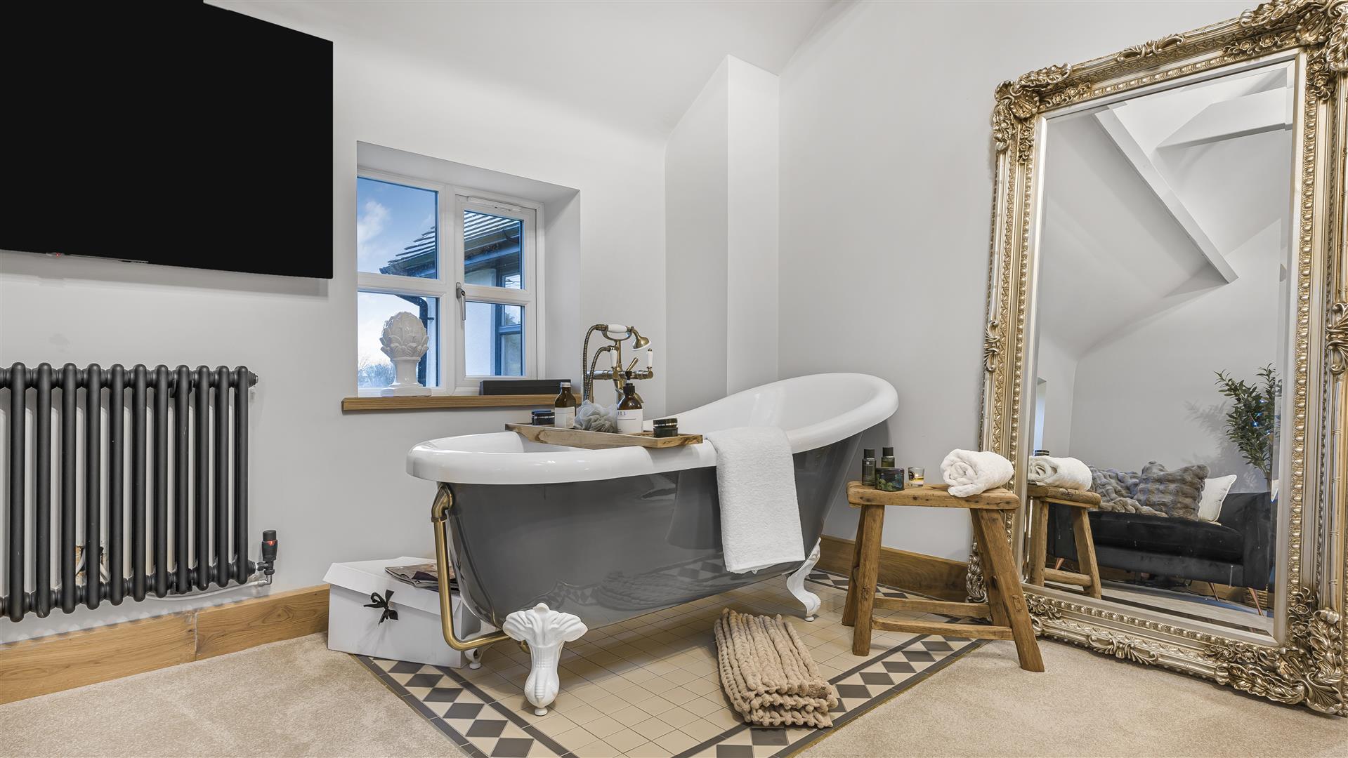A detached, self-contained two-storey barn conversion enhances the versatility of The Woodlands — ideal for guests, multi-generational living, or as a premium holiday let. It features a spacious sitting room, fitted breakfast kitchen, ground-floor bedroom with W.C., and a striking first-floor suite with dressing room and ensuite, all finished with the same meticulous attention to detail.