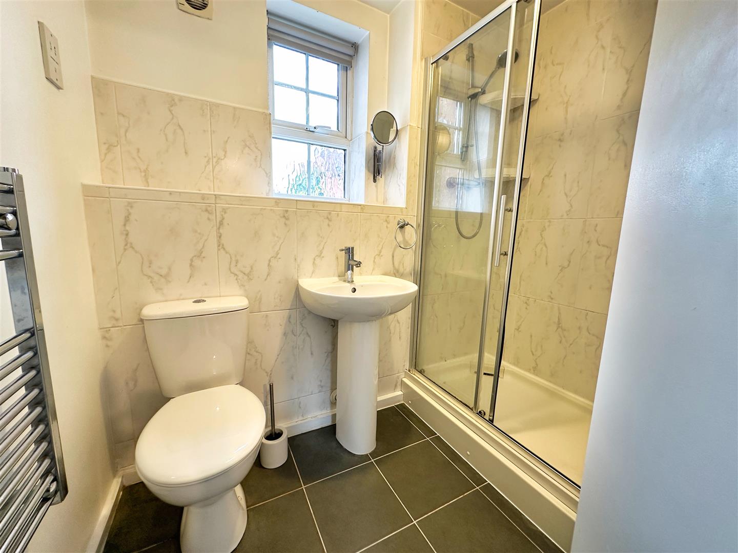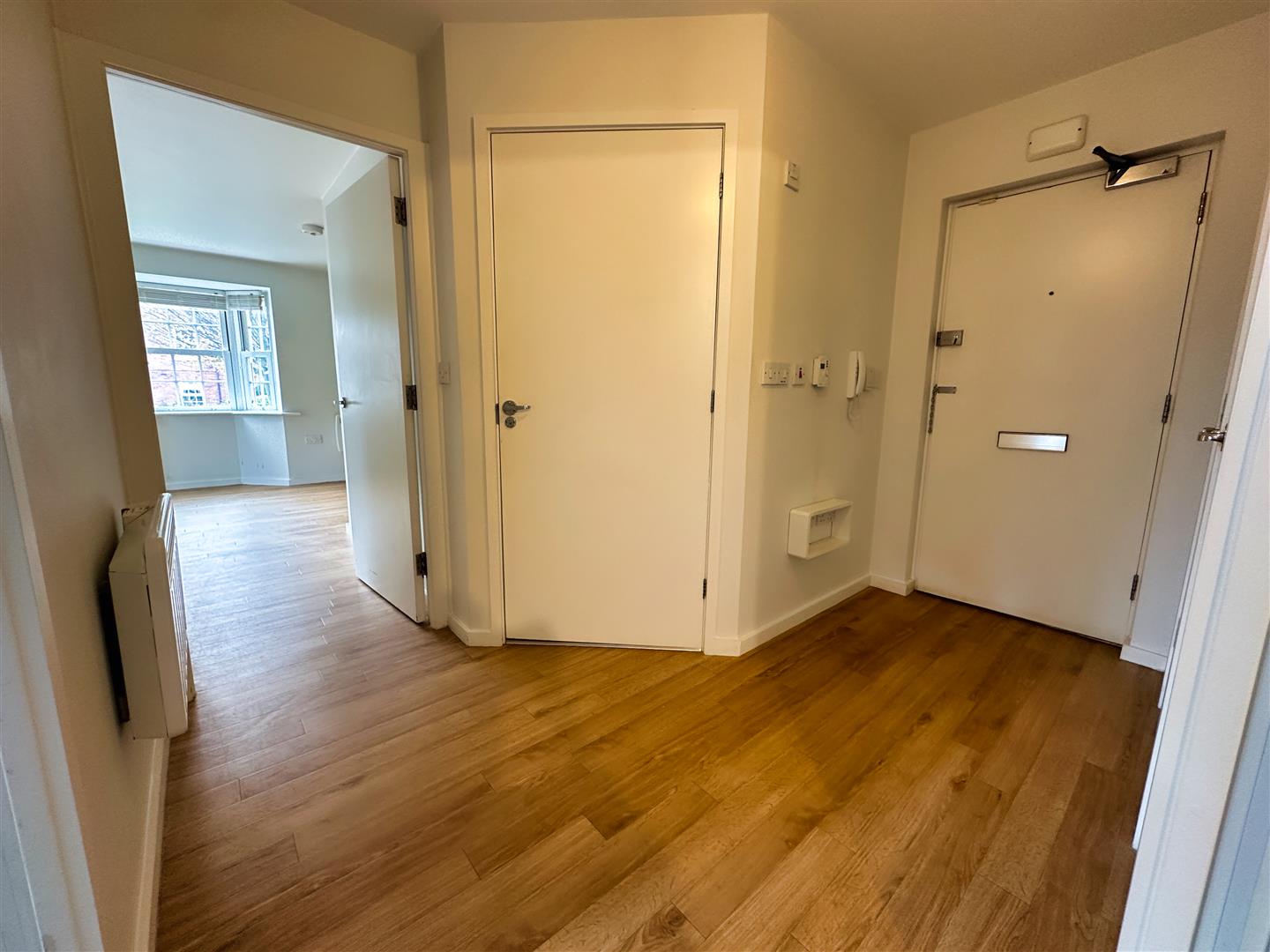 Practicality is key, with the entrance hallway offering a large storage cupboard and an airing cupboard. The apartment also includes a secure door entry system and an alarm panel, ensuring both comfort and security. Allocated parking is conveniently located at the rear entrance of the property, making access easy and stress-free.